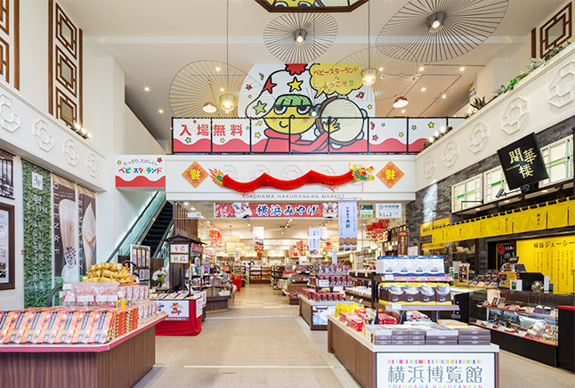 横浜博覧館(よこはまはくらんかん)は、中華街最大級のギフトショップをはじめ、ベビースターの出来たてが食べられる横浜おやつFactoryや、