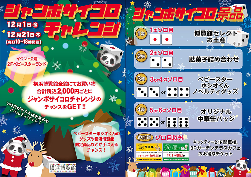 横浜博覧館全館でお買物合計税込2,000円ごとにジャンボサイコロチャレンジの